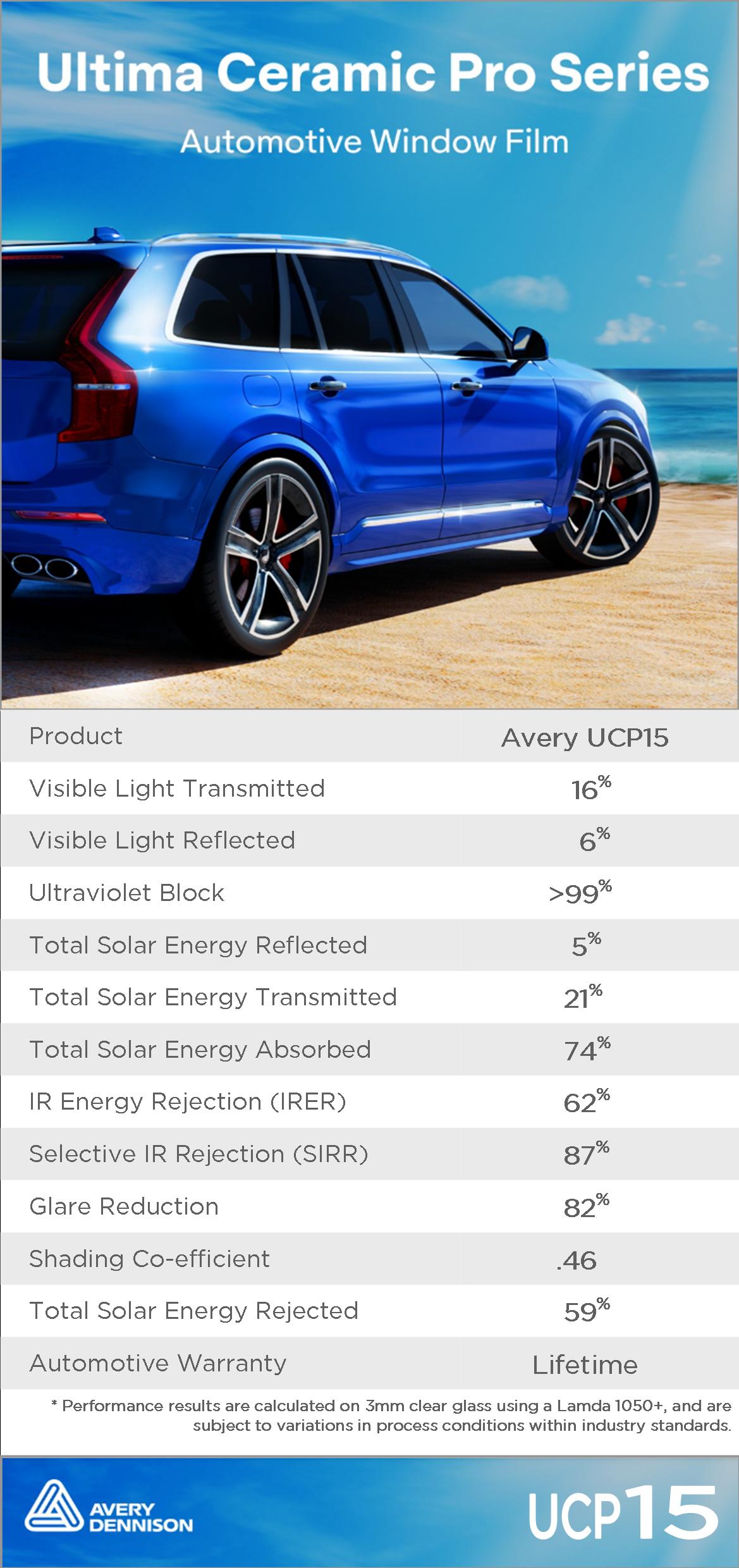 Avery Ultima Ceramic Pro 15% automotive window film.